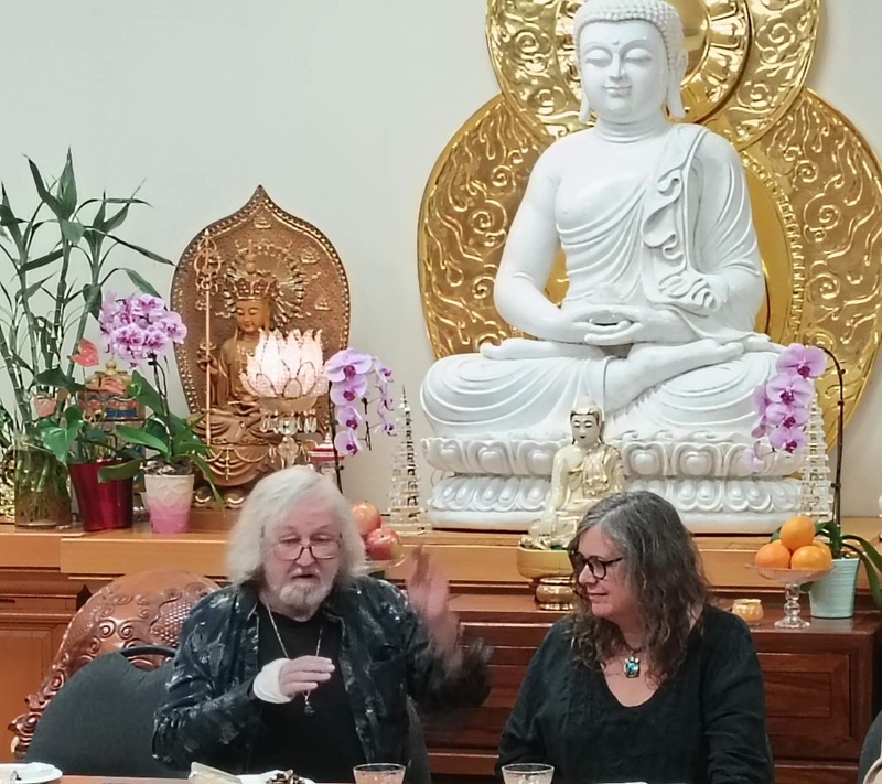 On the table, fragrant tea and mooncakes evoked lingering Mid-Autumn sentiments. One mooncake, carried all the way from the U.S. by a Dharma friend and returned to Toronto through the Abbot’s hands, became a symbol of transnational friendship — a “gift of karma” linking hearts across oceans.